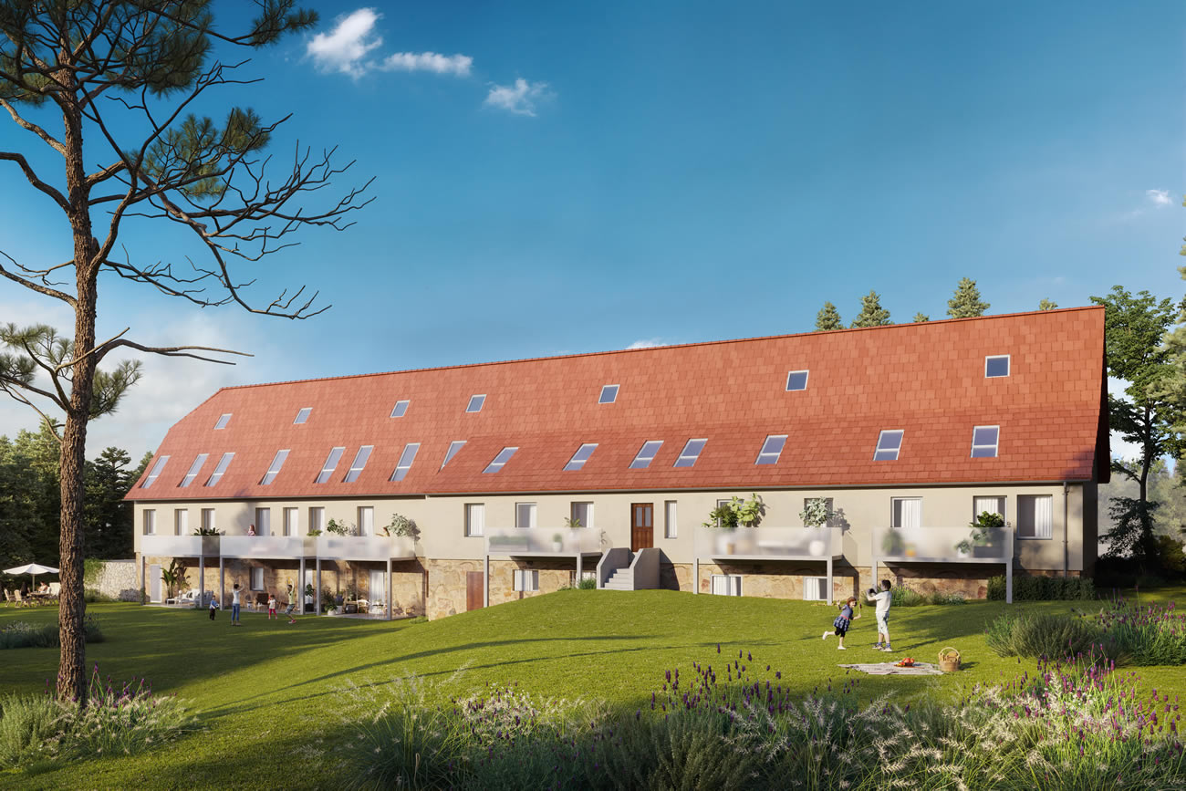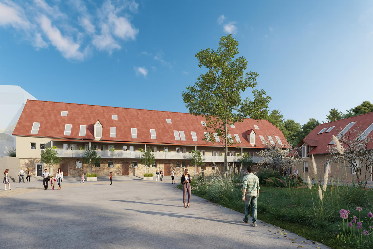 Dieses Objekt umfasst im ersten Bauabschnitt 25 Wohneinheiten in den denkmalgeschützten Gebäude 8, 9, 10 und 11 mit einer Wohnfläche von ca. 2.907,72 m2. Die ehemalige Nutzgebäude, wie z.B. der ehemalige Pferdestall und die Hofscheune, werden hochwertig saniert, umgebaut und einem neuen Nutzungskonzept zugeführt.